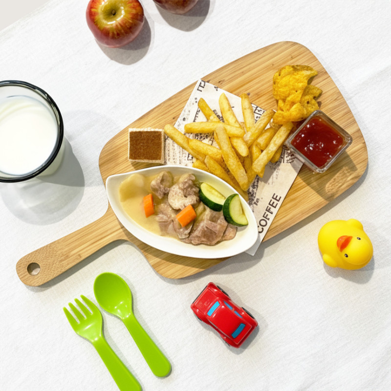 若有八歲以下寶貝在日光私廚用餐,我們準備了專屬的兒童餐可以選擇。餐點包含麵包、薯條、奶油白雞、濃湯、飲品。