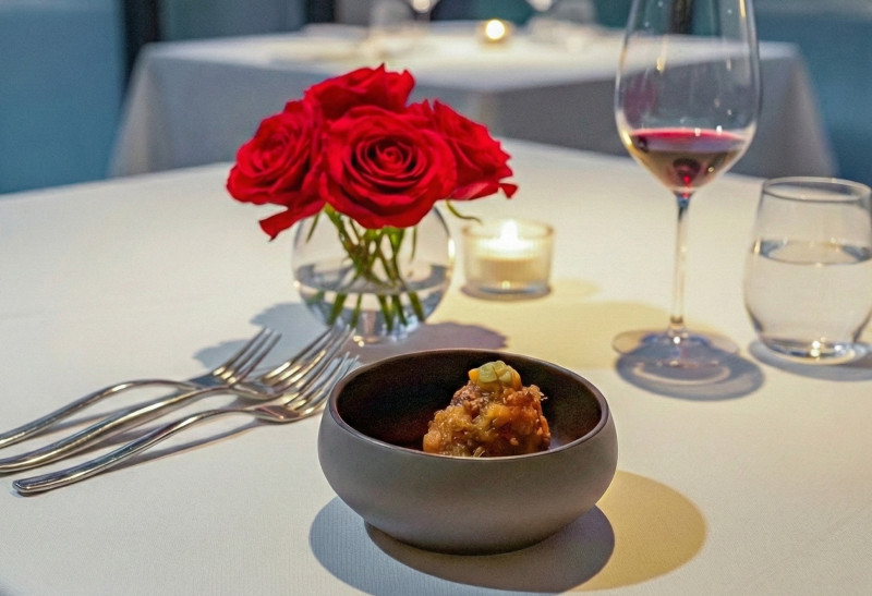 食材嚴選新鮮在地櫻桃鴨、低溫舒肥豬肋排、海港直送扇貝鮮蝦,經過主廚的巧手,遊龍戲鳳般將美食如畫般呈現於餐盤之中,作為價格1380的主餐選擇。